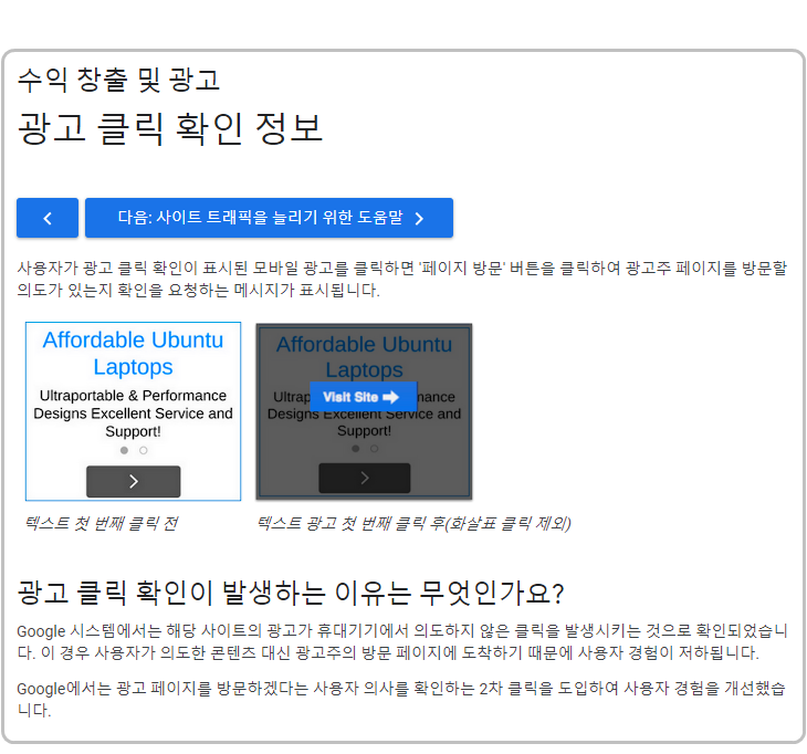 애드센스의 새로운 광고 정책이다. 부정 클릭 방지! 실수 클릭 방지!