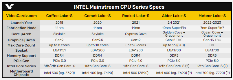 • Core i9-10900K의 후속 제품 Core i9-11900K 명명