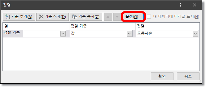 ▲ 정렬 기준을 열어보면 행이 나옵니다. 확인.