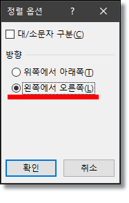 ▲ 왼쪽에서 오른쪽을 선택합니다. 행이라는 뜻입니다.