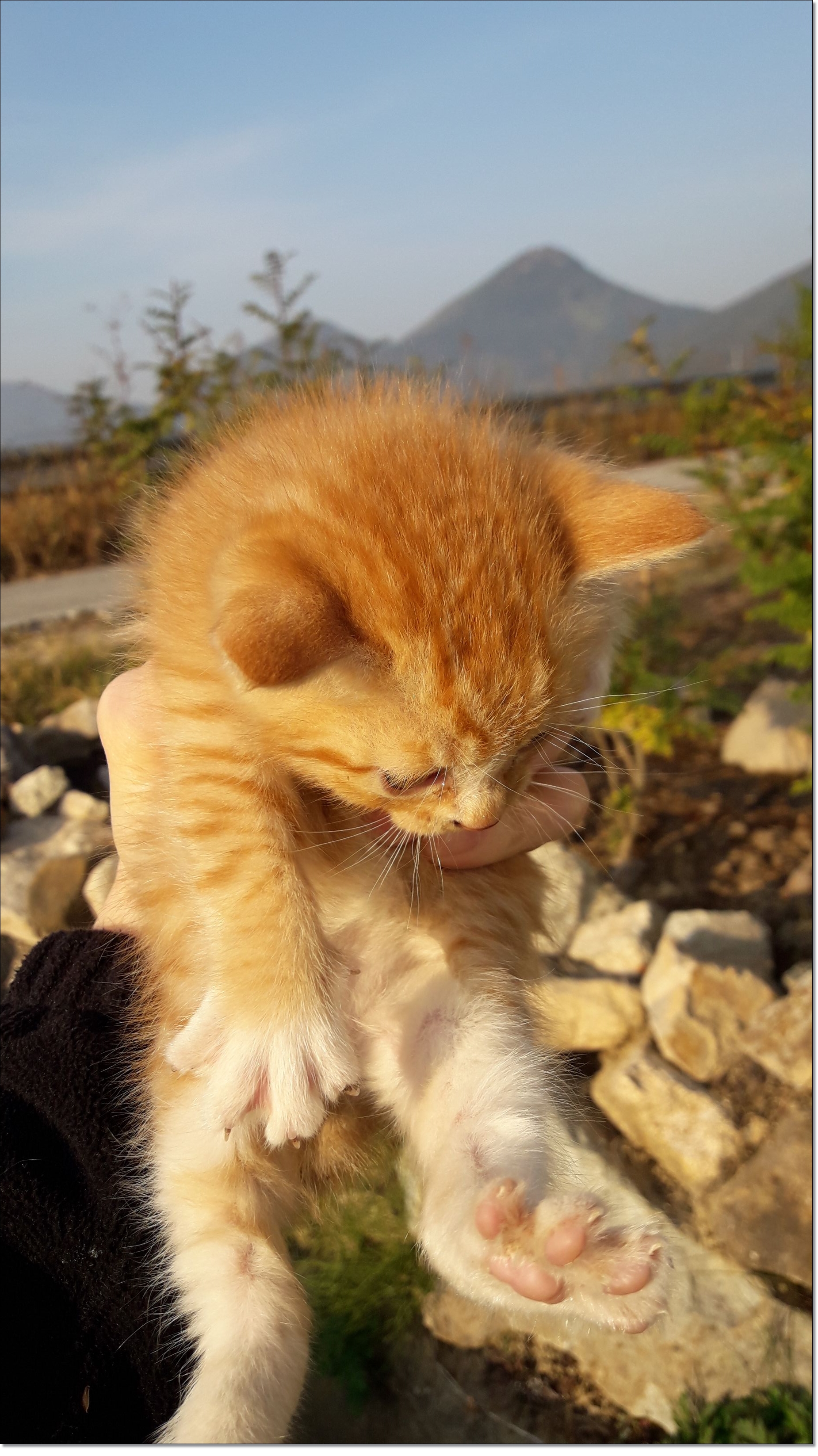 흰발이를 안고 저~~~ 멀리 산책을 가도 어미는 찾지도 않는다. ㅋㅋㅋ