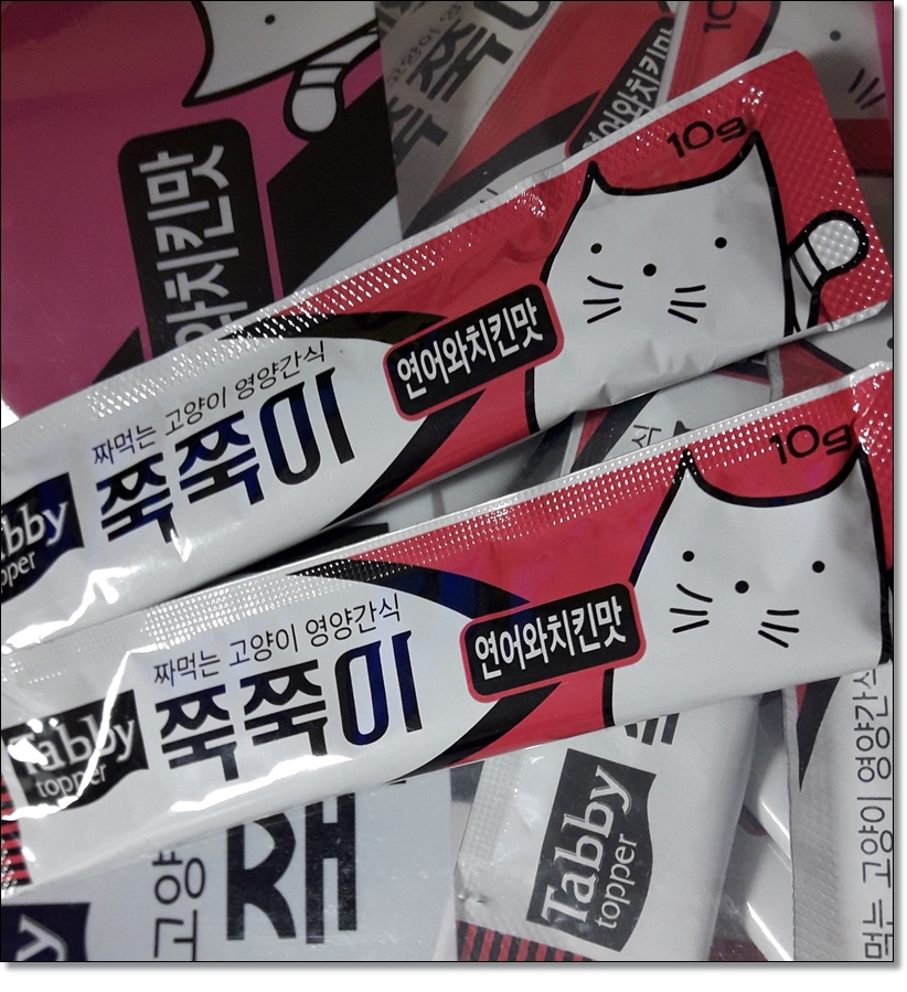 간식을 주면 항상 큰 녀석이 먼저 먹으려 하고 흰발이가 먹으려 하면 발로 얼굴을 밀어 못 먹게 한다.