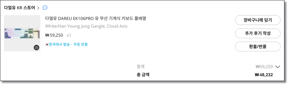 키보드 사고 싶어서 이것저것 구경하다 다얼유 유무선 EK106PRO가 가성비 좋아 보여서 구매했다.