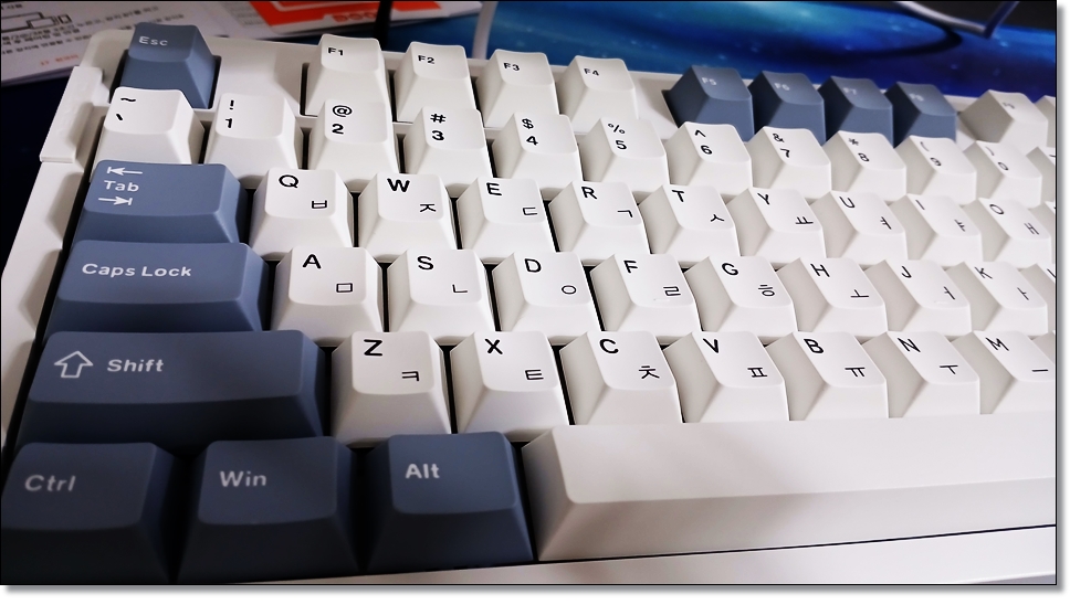 스위치(클라우드축)는 가볍다. 기존에 쓰던 청축, 황축이 워낙 무거워서 더 심하게 느껴진다. 손가락 피로도가 거의 없다.