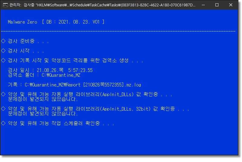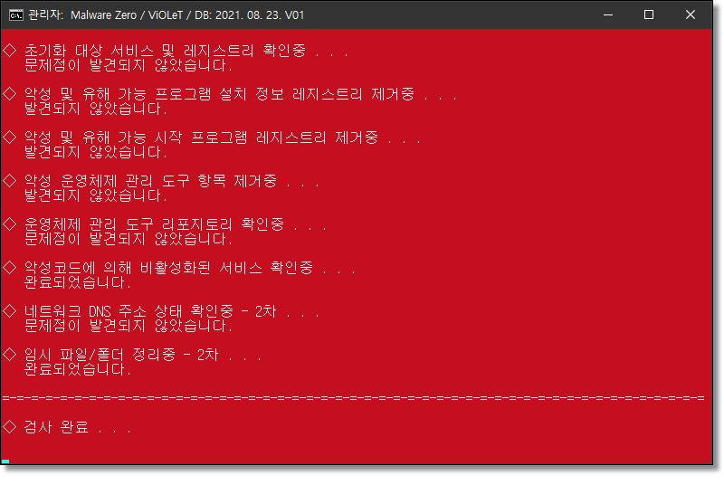 ↪ 악성 코드가 발견되고 치료하면 빨간색이고 아무것도 없으면 초록색이 나온다. 뭔가 이상해서 돌렸는데 역시 빨간색.