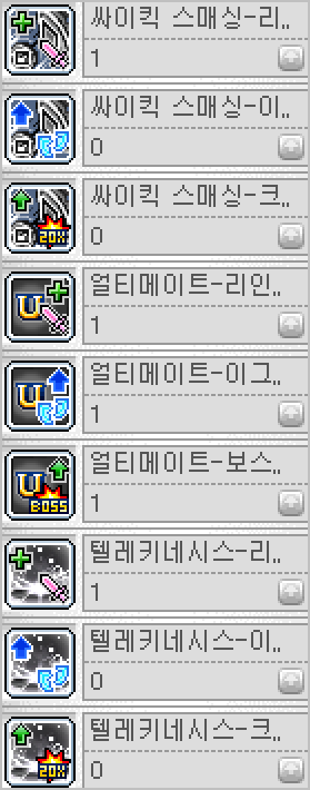 씨이킥 오버 > 이계 여신의 축복 > 싸이킥 보드 > 이계의 잔상 > 소올 컨트택트 > 리스트레인트 랑 > 싸이킥 노바