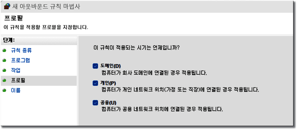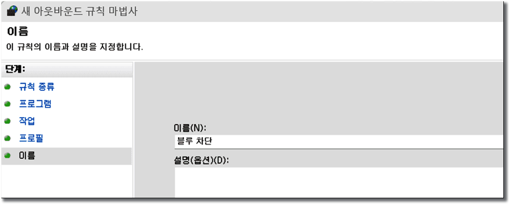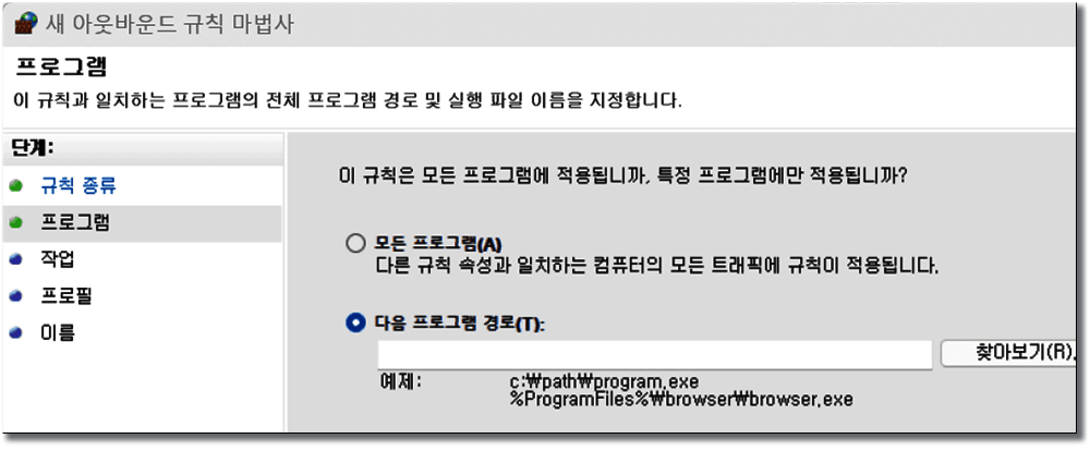 아웃 바운드 규칙 - 오른쪽 새 규칙