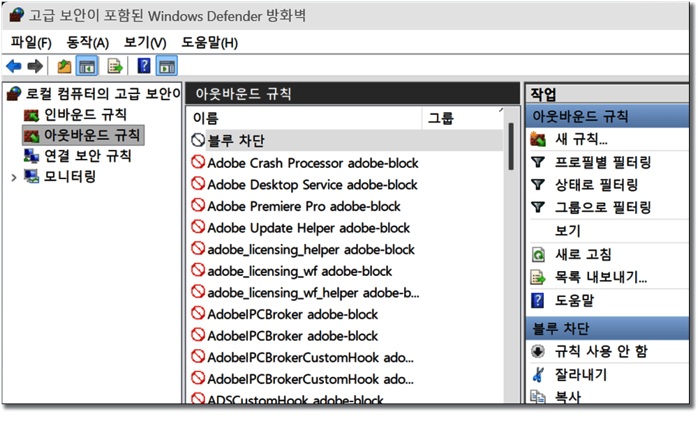 목록에 차단 규칙이 생겼다.