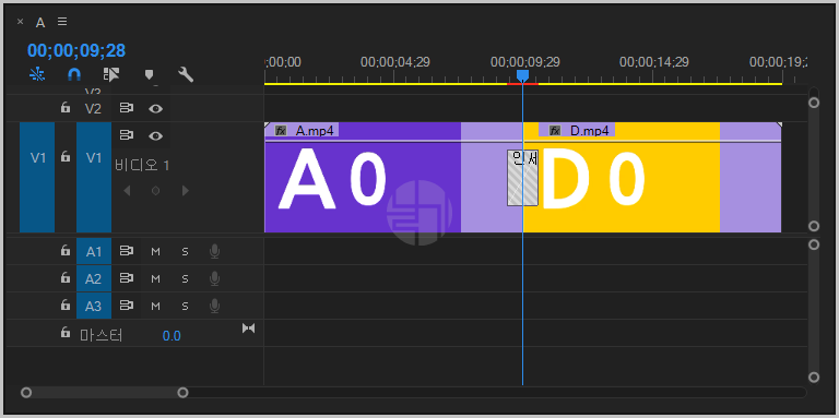 ▲ 지난번에 이어 비디오 전환 효과중에 하나를 익혀 봤습니다. 인세트 효과인데요. 뒤 클립이 모서리에서 사각형으로 확장되면서 앞 클립이 가려지는 효과입니다.