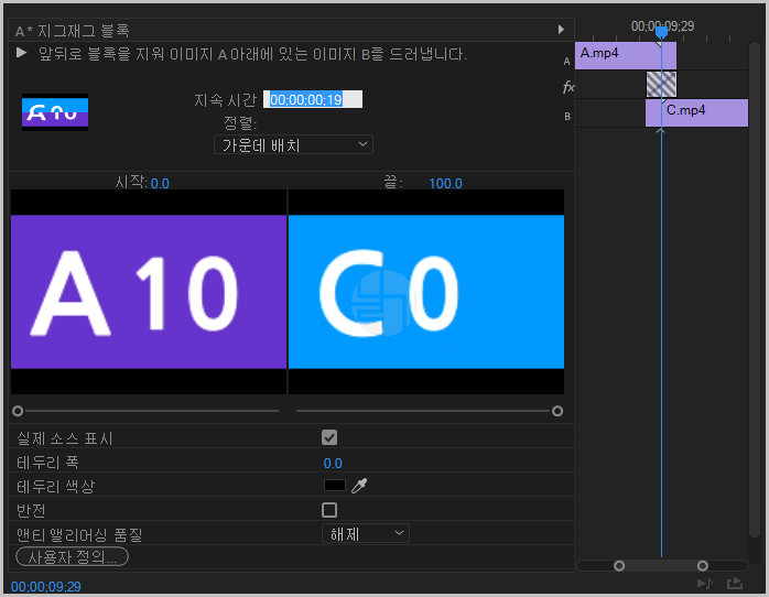 프리이머 프로 비디오 전환 효과 - 지그재그 블록을 복습하는 포스팅.