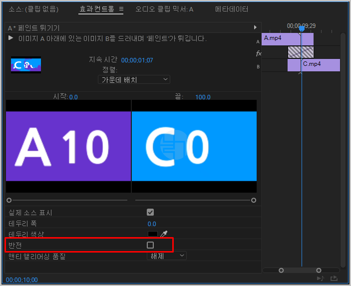 비디오 전환 효과 페인트 튀기기적용하기 복습.