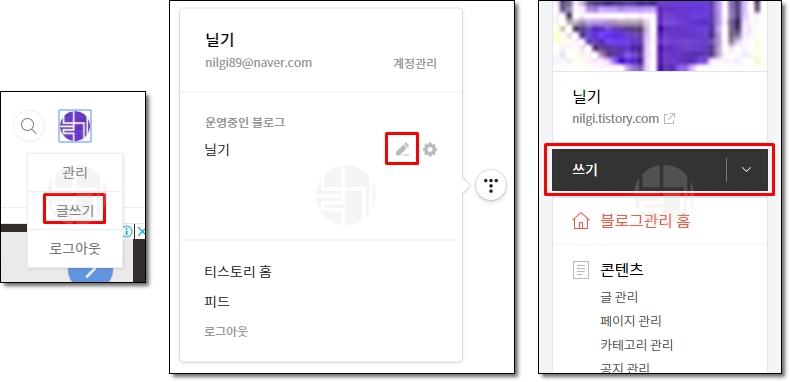 본인의 블로그 관리에 들어가면 글 쓰기가 있다.