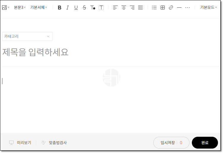 새 에디터 모습니다. 구 에디터에 비해 깔끔해 보인다. 구 에디터에서 지원하지 않는 기능이나 편의성도 있긴 하나 아직은 많이 부족한게 사실이다.