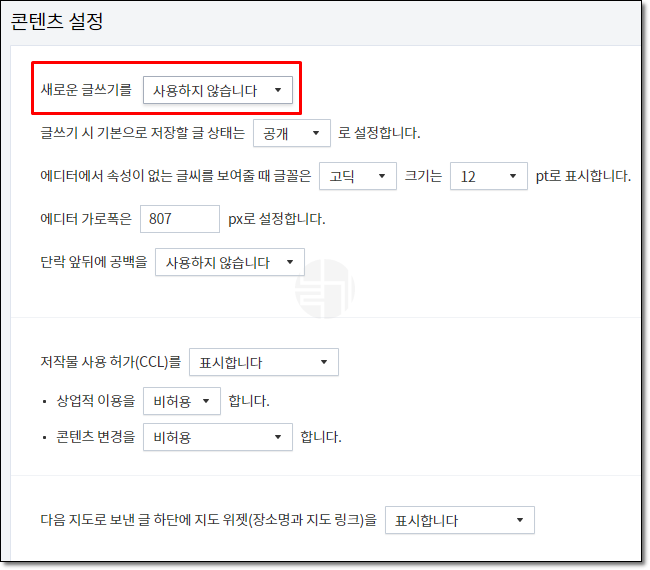 사용하지 않습니다.로 설정하면 구 에디터를 쓸 수 있는데 새 에디터와는 달리 여러 가지를 설정할 수 있다.