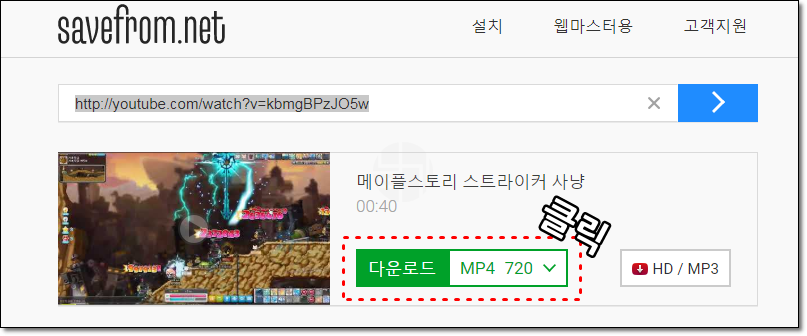 영상 주소 앞에 'ss' 글자 넣기.