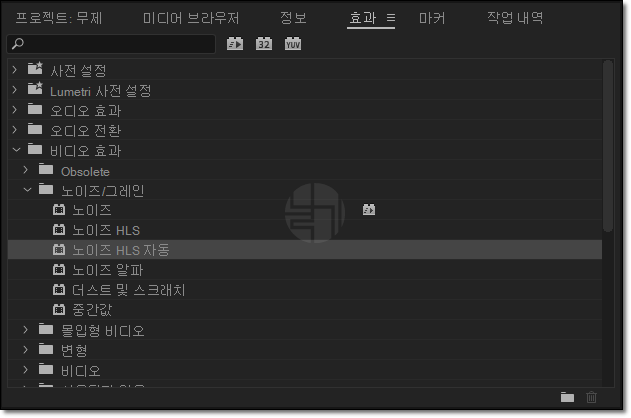 프리미어 프로 비디오 효과 - 노이즈 HLS 자동.