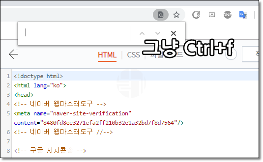 ▲ 브라우저의 찾기 Ctrl +F. 이거는 웹페이지의 내용 찾기구요.