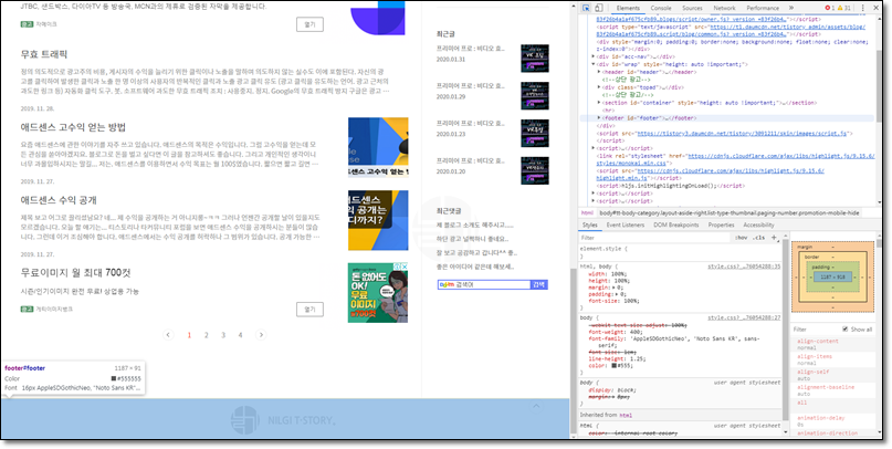 블로그 하단에 초대형 광고 넣는 방법을 알아보아요. 아주 간단합니다. 하나만 알면 어디에든 적용 가능하니 이것만 기억합시다. div 구조 파악!