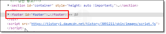 ▲ 스킨편집 - html 편집에 들어가서 찾기(Ctrl+F)로 'footer'을 찾아줍니다. 거의 맨 아랫부분에 있습니다.