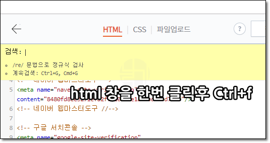 ▲ html 편집 창을 한번 클릭후 Ctrl+F. 태그 찾기는 이거!