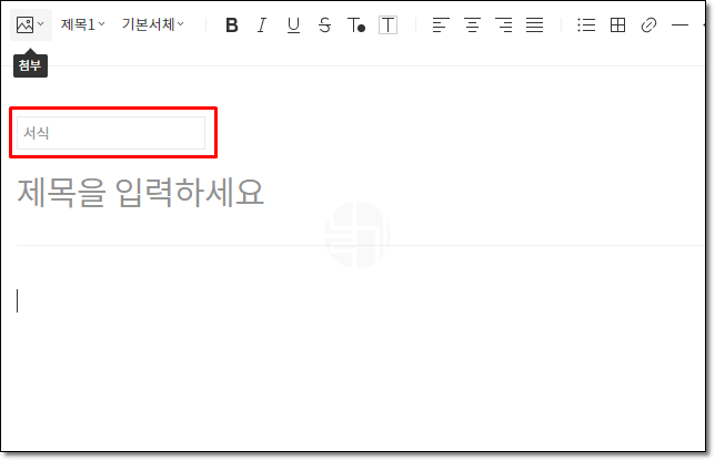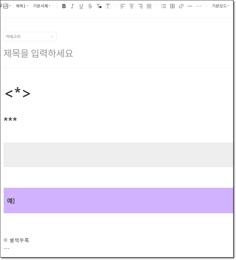 ▲ 새 글 쓰기를 하면 위 메뉴에 서식이 있습니다.