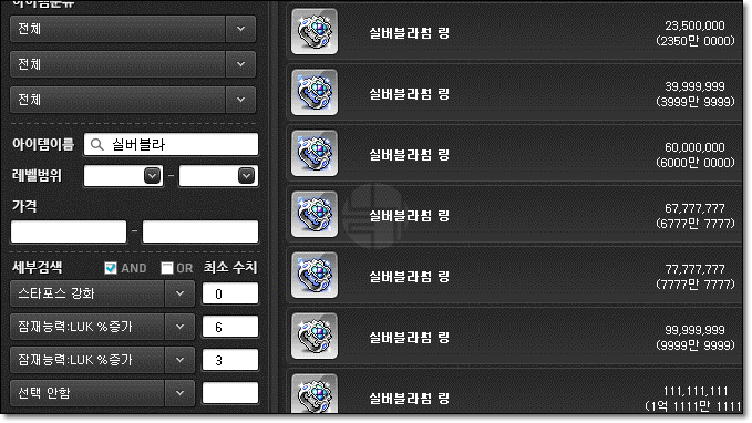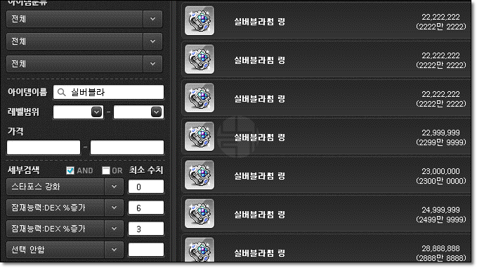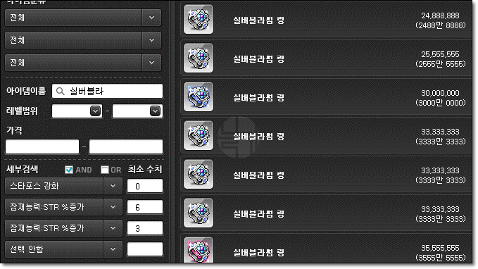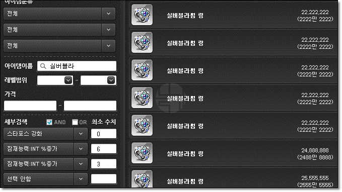 먼저 노작 에픽 잠재능력 9%짜리 실버블라썸 링 가격부터 봅시다.