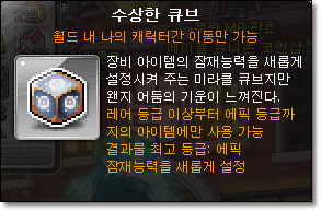▲ 그리고 교환 불가능한 수상한 큐브로 잠재능력 스탯 9% 짜리를 만들어서 팔면 됩니다. 교환 불가 수큐를 이용하는 이유는 교환 가능한건 또 팔아야죠.^^