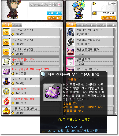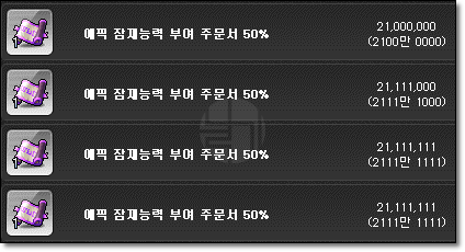 ▲ 에픽 잠재능력 주문서는 엄청 비싸죠? 이걸 사서 하라는게 아닙니다.