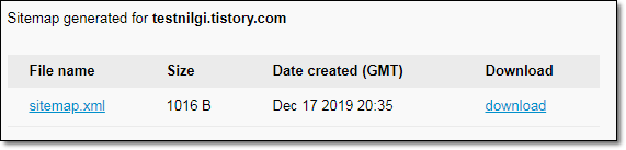 ▲ 카테고리가 1개인 블로그의 사이트맵 파일 크기는 1016B입니다.