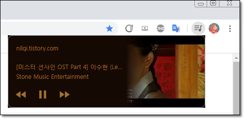 처음 알았다. 유튜브를 재생하고 있으면 확장프로그램 탭에 저렇게 음악목록 아이콘이 생긴다는 걸.