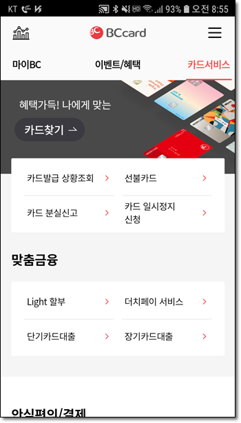 분실 신고 다시 취소도 가능한가? 해서 BC 카드 앱에 들어가 보니 된다.