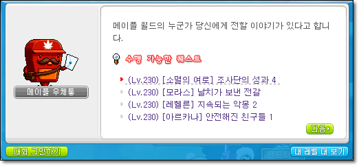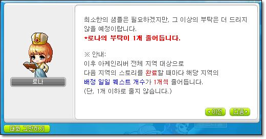 모라스 길뚫을 하고 나니 이전 단계의 모든 일퀘가 줄어든다.