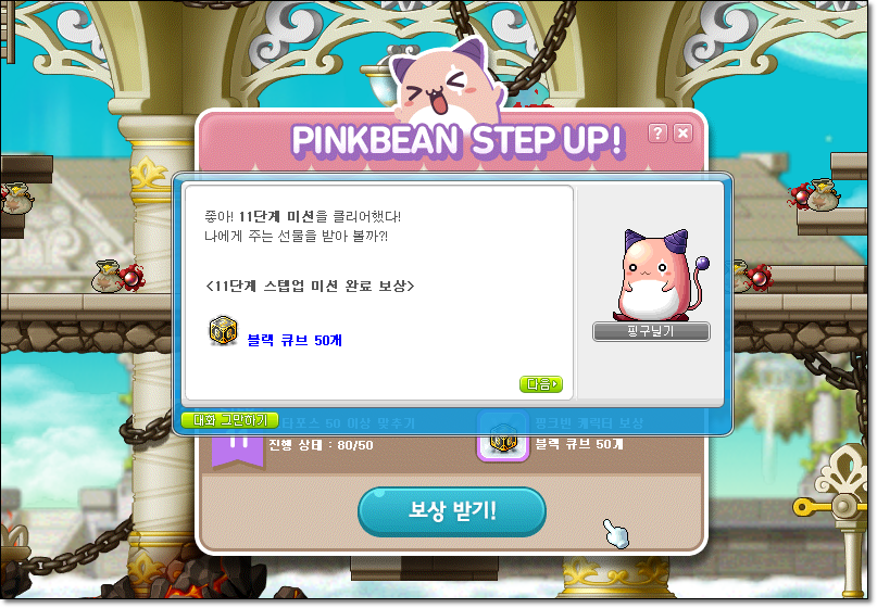 랩 160때 핑크빈이 핑크빈 잡는 미션이 있어요. 다른분들이랑 6인파티로 들어갔는데 엄청 어려웠다능. ㅠㅠ