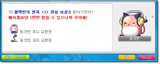 블랙핀의 편지를 클리어 하고 받은 캐쉬 아이템 두개.